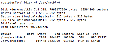 You can see that there is a partition at /dev/mmcblk0p1 , the p1 refers to partition 1 so that is device /dev/mmcblk0 but what partition is the / mount point?