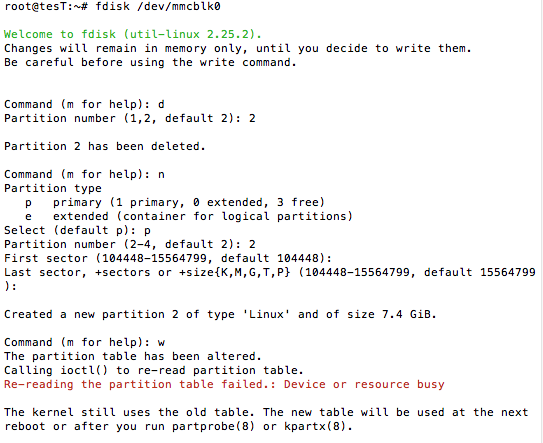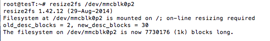So you can see that we want to expand the partition /dev/mmblk0p2 on device /dev/mmblk0