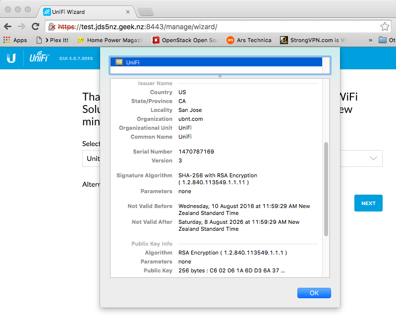 You should now have your own trusted certificate and can start restoring your saved config or starting with your fresh Unifi install.